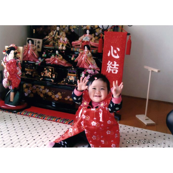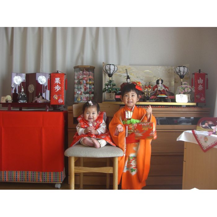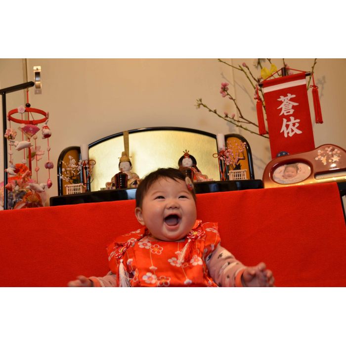 果歩ちゃん、いつもかわいい笑顔をありがとう。お姉ちゃんと仲良く遊んでいる姿を見ると、とても嬉しいです。これから毎年、お雛様を飾ろうね。