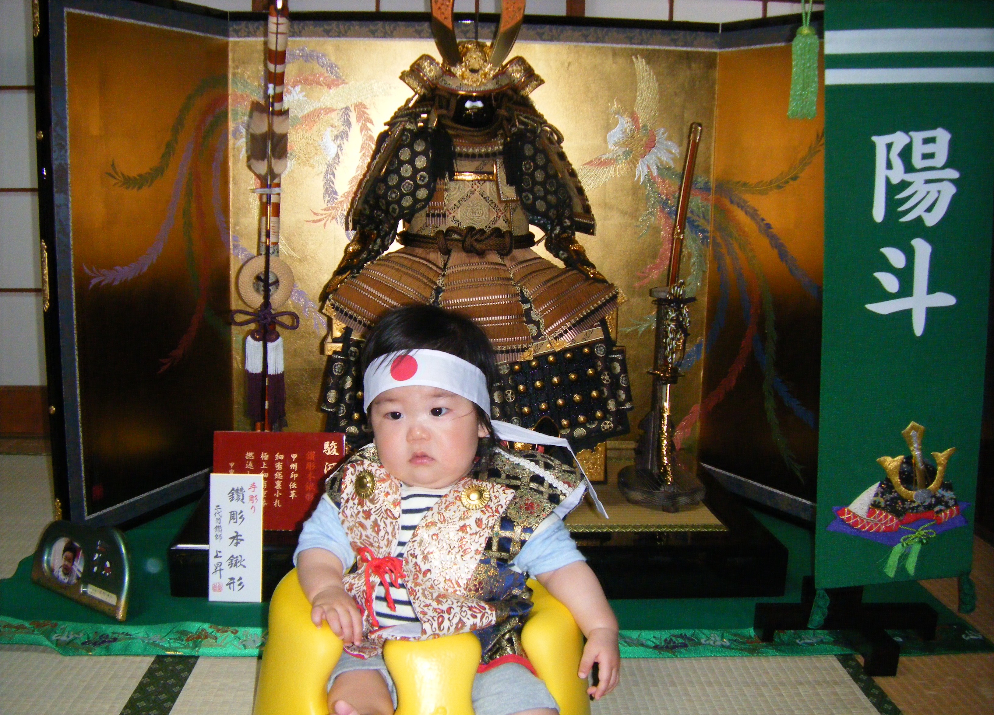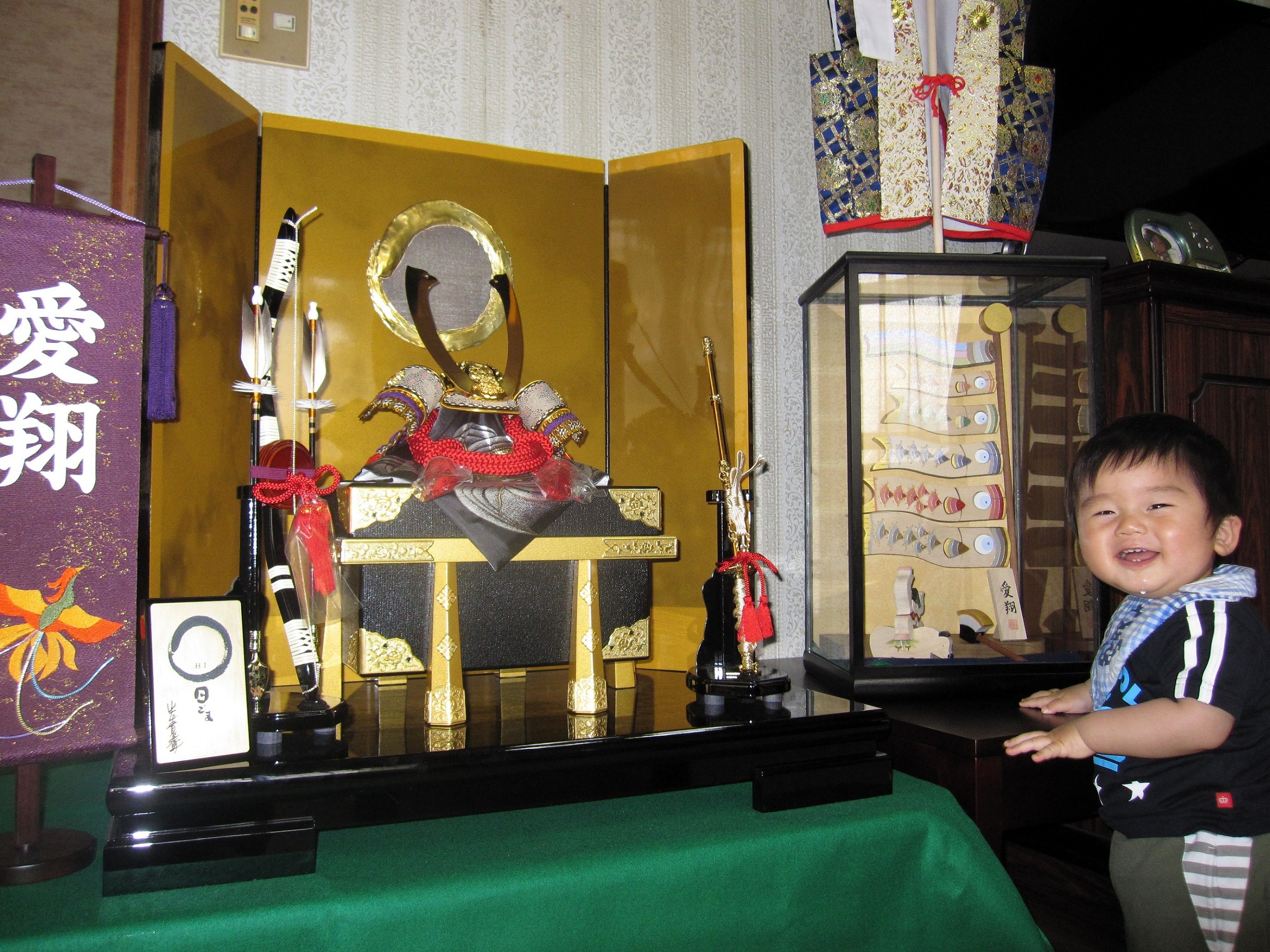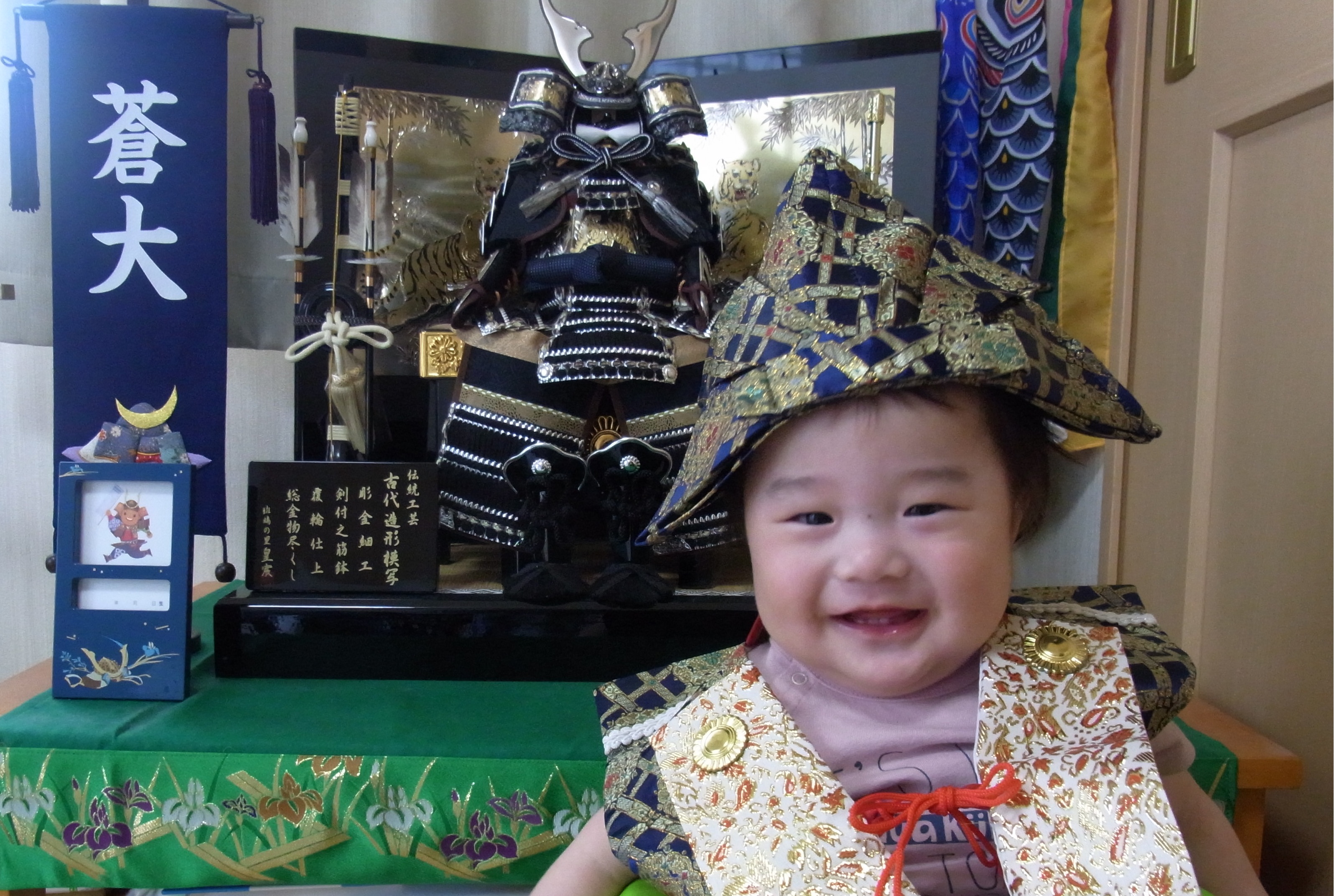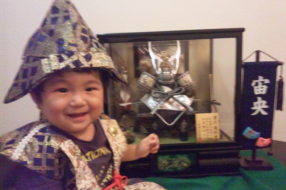 琉翔くん、初節句おめでとう。これから毎年、じいじとばあばがプレゼントしてくれた兜飾って家族みんなでお祝いしようね。強く逞しく、心の優しい男の子になって下さい。パパもママも琉翔ちゃんが大好きだよ。
